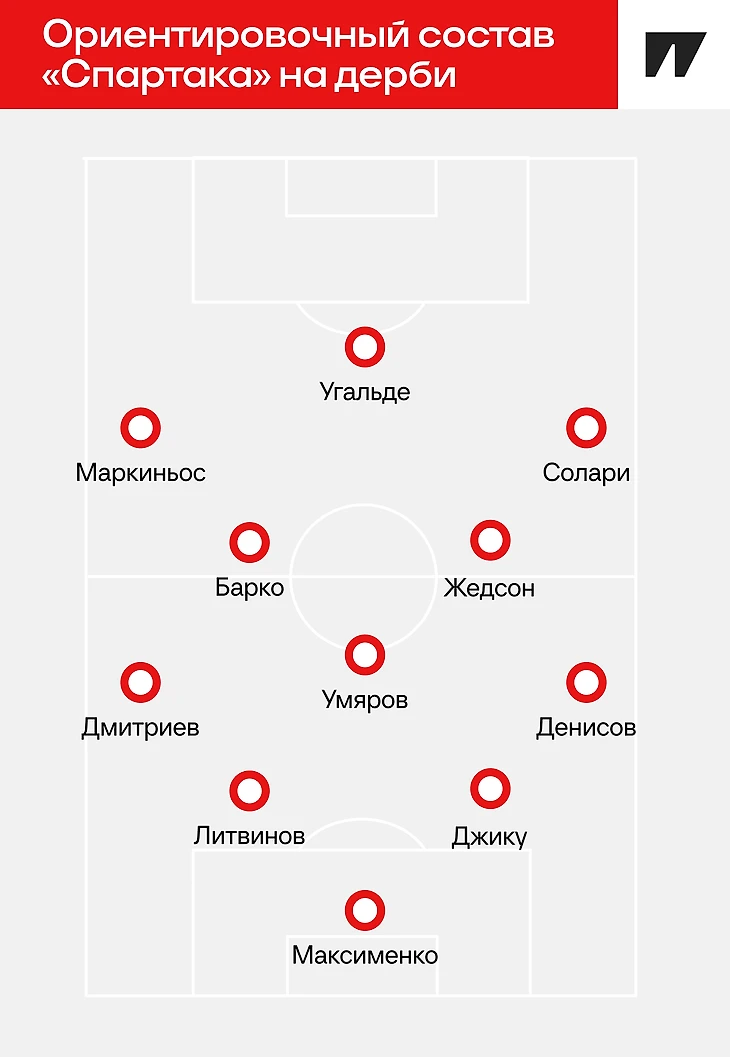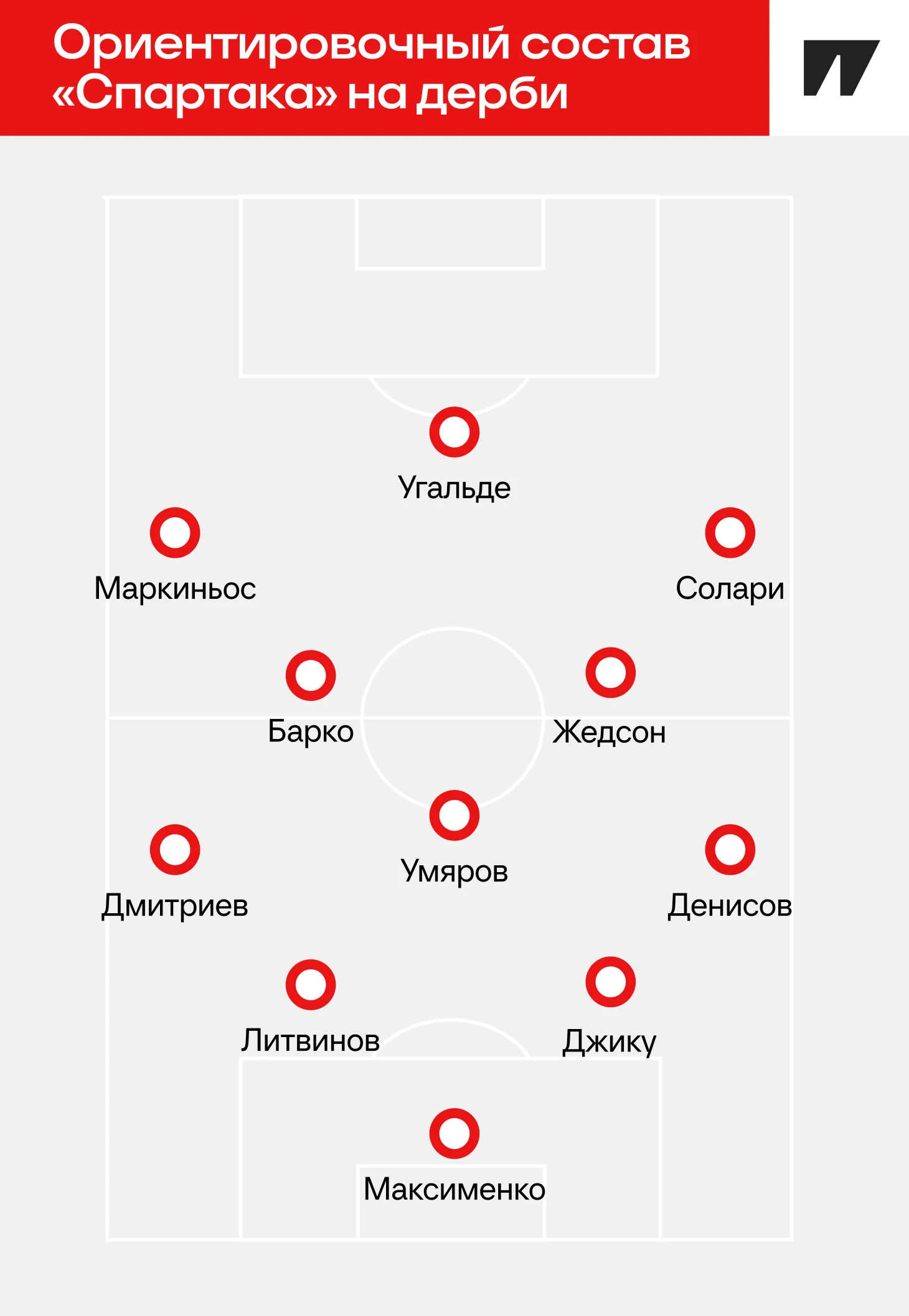 Маркер проблем: Даниил Денисов и переученный вингер Игорь Дмитриев практически безальтернативны. Илья Самошников не в форме из-за повреждения, Олег Рябчук недостаточно хорош впереди. За фланги «Спартака» тревожно, учитывая мощь быстрых выпадов ЦСКА, скорость вингеров и опасные подключения крайних защитников. В теории у Станковича есть пара ходов, как можно замаскировать слабости.
