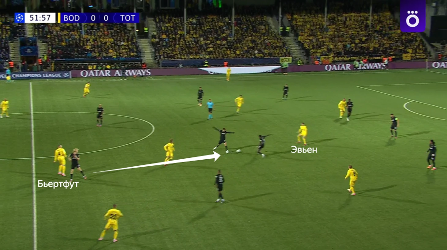 В одном из эпизодов Бьертуфт сотворил локальный мини-шедевр. Защитник отрезал четверых игроков «Тоттенхэма» одной вертикальной передачей.