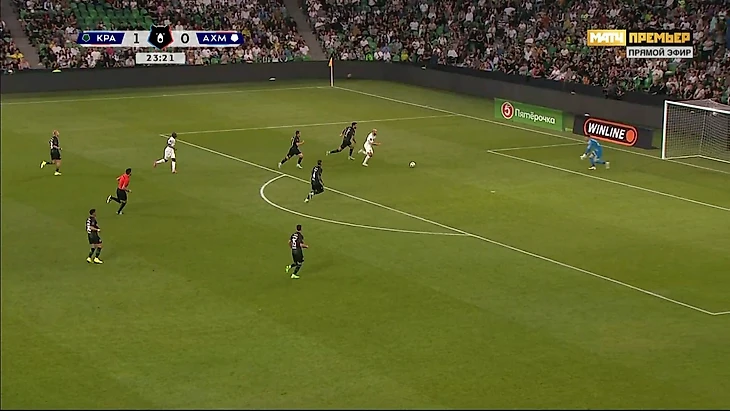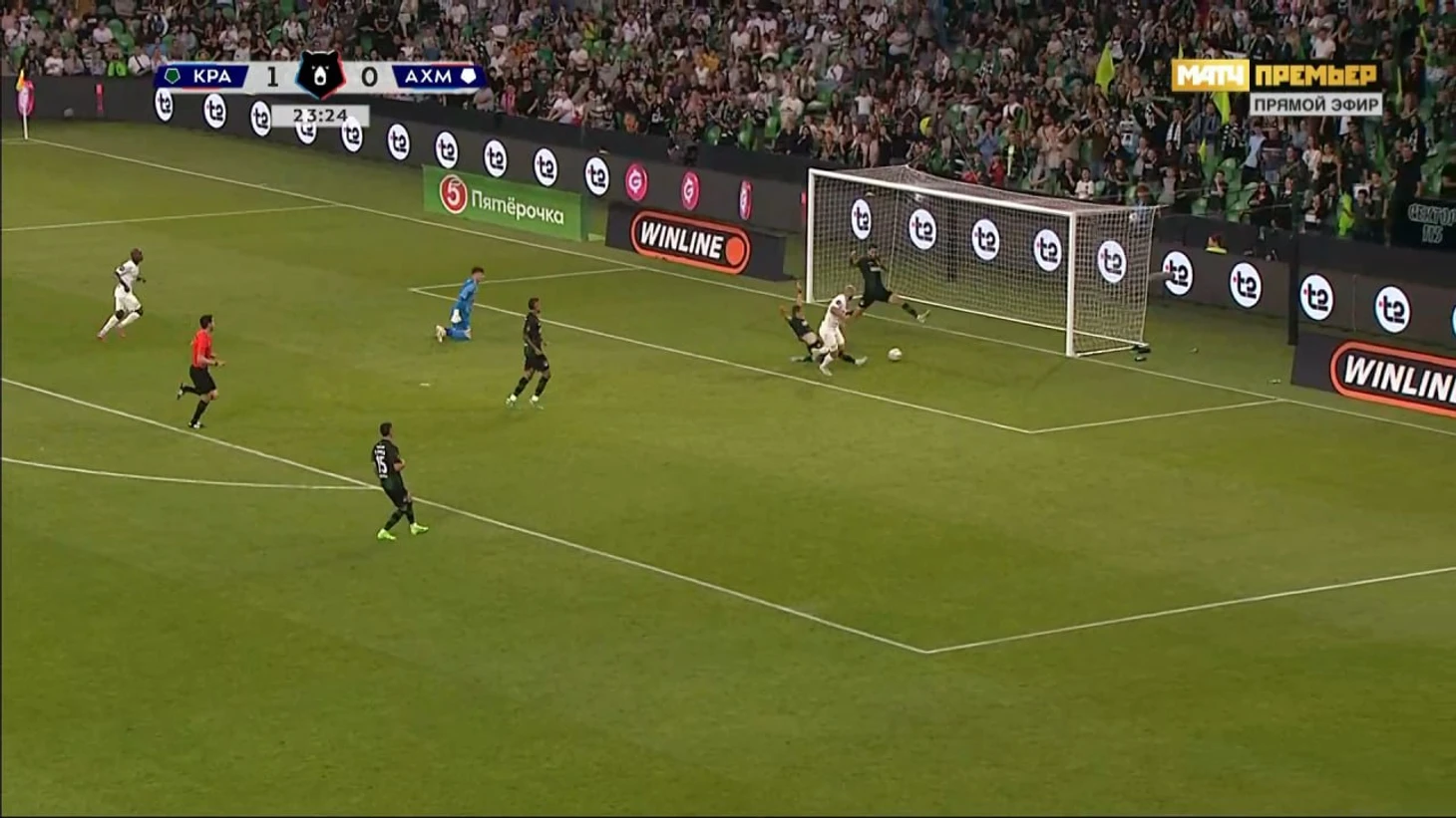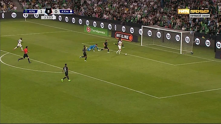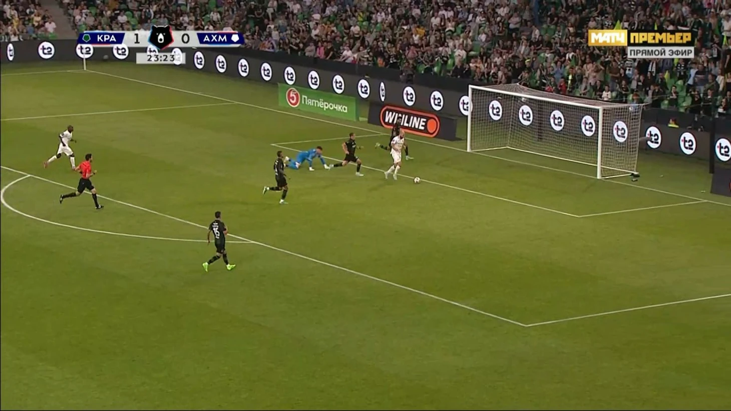 «Ахмат» сначала даже владел инициативой, но «Краснодар» ответил шикарным голом Джона Кордобы. Колумбиец из-за штрафной засадил под перекладину. Был рикошет от Надера Гандри, Гиорги Шелия поднял руки, но не спас.