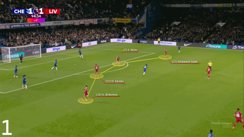 Матч с «Челси» показал, что Слот умеет приспосабливаться. Перевод Собослаи на позицию правого защитника и появление на поле Флориана Вирца и Кертиса Джонса, полузащитников, которые постоянно перемещаются, создавая пространство, помогли создать моменты, подобные приведенному ниже.