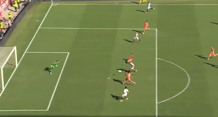 Тут вообще человек сначала скучал в офсайде, а потом в одиночку ждет прострелик на дальней штанге🤙