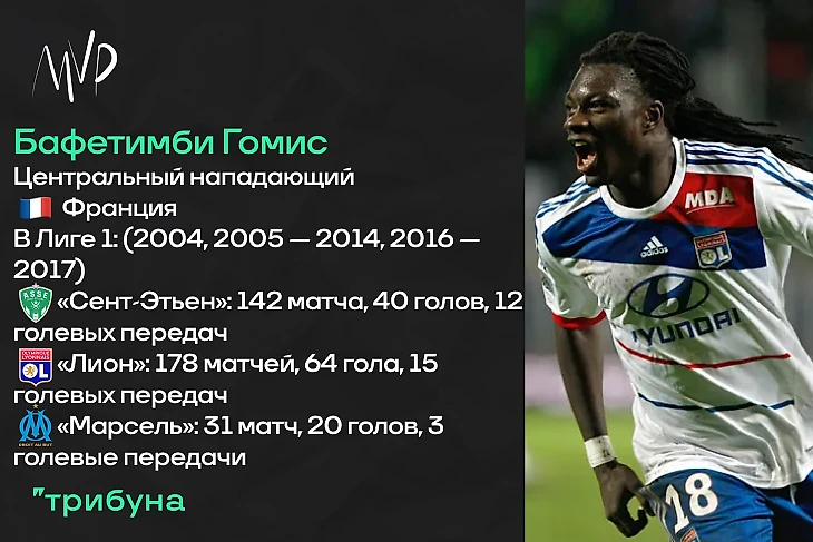 Включение Бафетимби Гомиса в выпуск, думаю, очевидно. Я, как автор, не скрываю своих фанатских предпочтений — именно «Лион» с французским форвардом на острие атаки влюбил меня в себя в начале десятых годов. Бафе сразу стал одним из любимых футболистов — яркая внешность (дреды, собранные в хвост и «львиное» выражение лица), продуктивная игра в нападении с голами на любой вкус… Это всё, конечно, повлияло. Но среди фишек Гомиса особняком стоит его манера праздновать голы, имитируя движения хищной кошки. Однажды, наш герой этим напугал мальчика, подающего мячи у бровки, за что после извинился. Что ещё? Периодически, нападающий падал в обмороки на тренировках. А ещё он просто очень долго был на слуху, даже после отъезда из топ-лиг. Безусловно, Бафетимби — одна из самых ярких персон Лиги 1 той эпохи.