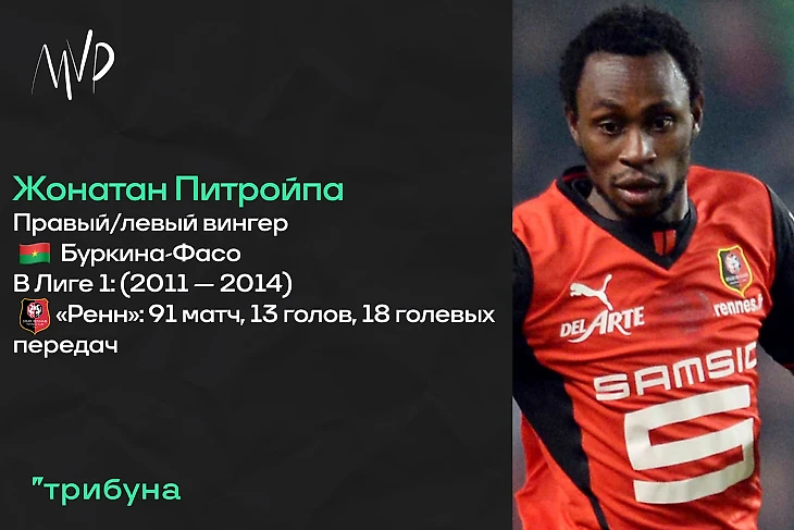 Ну и завершать сегодняшнюю подборку будет вингер из довольно экзотической для того периода страны — Буркина-Фасо. Жонатан Питройпа (или Питруапа) свой европейский путь начинал с немецкого футбола, где дебютировал в Бундеслиге за «Фрайбург». Вылетев с ними из высшего дивизиона, африканец очень неплохо проявил себя во втором, в одном из сезонов набрав восемнадцать очков по системе гол+пас. После трёх лет на этом уровне, в 2008 году Жонатан вернулся в первую Бундеслигу, свободным агентом подписавшись в «Гамбург». В стане «динозавров» буркиниец провёл три неплохих сезона, не отличаясь особой результативностью, но стабильно будучи важным футболистом стартового состава. Так, после сезона-2010/11, когда Питройпа отметился семью ассистами в Бундеслиге, за ним пришёл французский «Ренн». Бретонцы заплатили немцам 3.50 миллиона Евро.