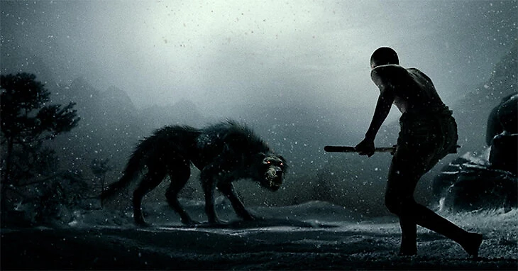 В самом начале повествования юный спартанец в процессе инициации сражается с волком. Зверь выглядит гротескным воплощением превосходящей жестокой силы, своеобразным олицетворением страха, который нужно побороть, чтобы стать мужчиной. Шкура и мех волка, вообще вся его фигура – чернее любой ночи, глаза хищника горят зловещим желтым огнем.