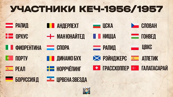 От автора: дорогие читатели, мы продолжаем цикл обзоров, посвященных Кубку европейских чемпионов. На очереди – второй по счету турнир-1956/1957 годов. Еще больше историй и видеообзор КЕЧ-1956/57 вы найдете у нас в Телеграм.