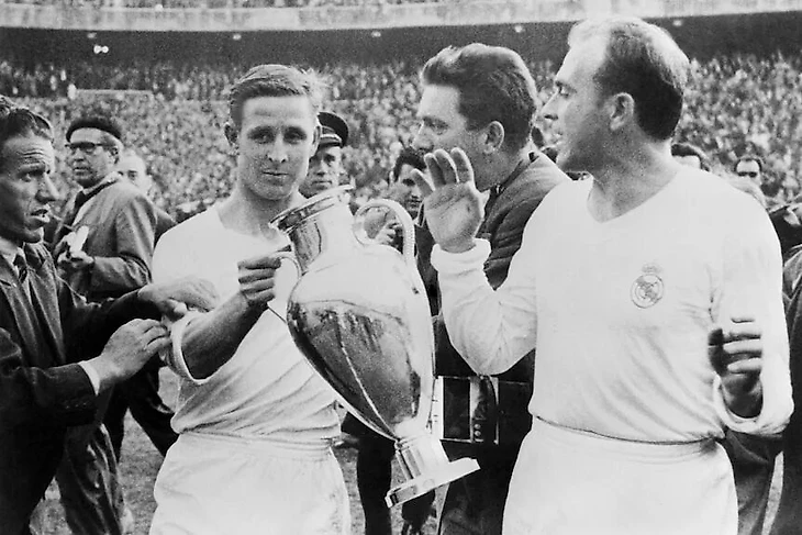 Результаты их работы превысили все ожидания. Через несколько недель из Аргентины в Испанию были доставлены документы, согласно которым следовало, что прадед Риаля был испанцем и более того – в свое время за заслуги перед родиной был отмечен самим королем. Бернабеу, который собирался было уже одолжить Копа «Марселю», аж подпрыгнул от радости. Еще бы – теперь все трое могли одновременно выходить на поле.
