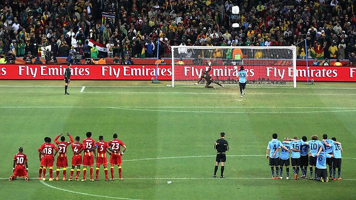 Многим тот поединок запомнился вратарским подвигом Луиса Суареса в конце второго овертайма и незабитым пенальти в исполнении Асамоа Гьяна. Без сомнений — легендарно. Но у меня в памяти отпечаталось хладнокровное исполнение Себастьяном Абреу решающего пенальти паненкой. Помню, тот гол даже крутили на Евроспорте в подборке самых красивых мячей за неделю.