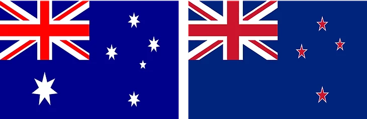Австралия и Новая Зеландия до сих пор являются доминионами Великобритании, о чем свидетельствует Юнион Джек в левом верхнем углу. Когда-то обе сборные играли в зоне Океании, но с 2006-го австралийцы сменили океаническую прописку на азиатскую. Вышло даже лучше: путаницы с флагами стало даже меньше; у Австралии больше звезд (6 против 4), а кроме всего они белого цвета, в то время как у новозеландцев они красные.