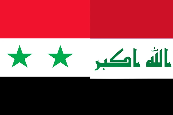 Флаг Сирии - со звездами, флаг Ирака - с арабской вязью