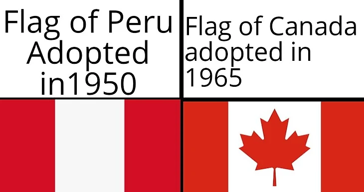 Начнем с красно-белого. Сборная Канады, самый северный организатор грядущего мундиаля, приняла свой собственный флаг 60 лет назад. Несмотря на это, их на 15 лет опередила сборная Перу. Но чтобы различать оба флага, неизменным атрибутом канадского стал красный клен на белом фоне. В остальном все одинаково. «Инков», кстати, мы на ЧМ не увидим.