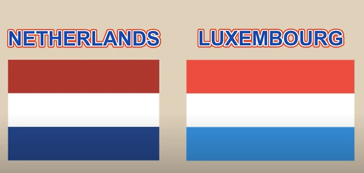 Удивительно, но практически идентичными друг другу являются флаги Люксембурга и Нидерландов, правда футбольными успехами могут похвастаться только Оранье. Люксембургу еще предстоит проделать большой путь, чтобы сбросить с себя репутацию карлика. Примечательно, что нидерландский не является в Люксембурге официальным языком; Герцогство получило свою независимость от Франции, а кроме французского можно услышать немецкую и местную люксембургскую речь. Чтобы не было путаницы с Нидерландами, пришлось осветлить красную верхнюю полосу флага, а нижнюю сделать лазурной.