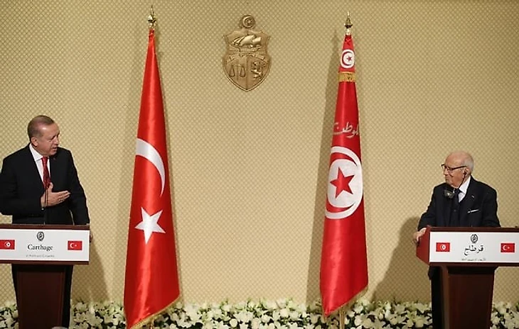 Глава Турции Реджеп Тайип Эрдоган как бы спрашивает у Каиса Саида: "может проведем товарищеский матч сборных"?