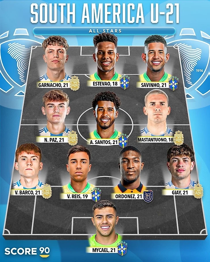 Портал Score 90 предложил сравнить лучшие составы молодых игроков из Южной Америки и Европы.