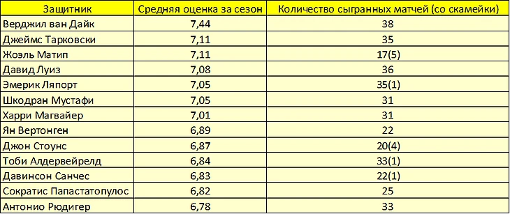 Конкретный пример оценки игроков – сезон 2018/2019 АПЛ (пиковый сезон Ван Дайка, когда он занял второе место в голосовании за «Золотой мяч»)