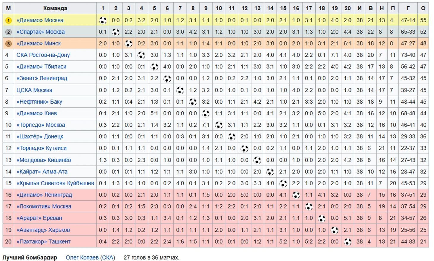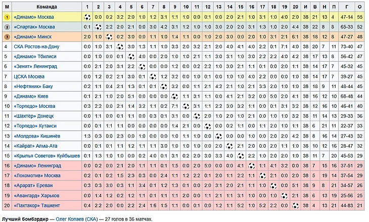 Для начала изучим итоговую таблицу чемпионата СССР