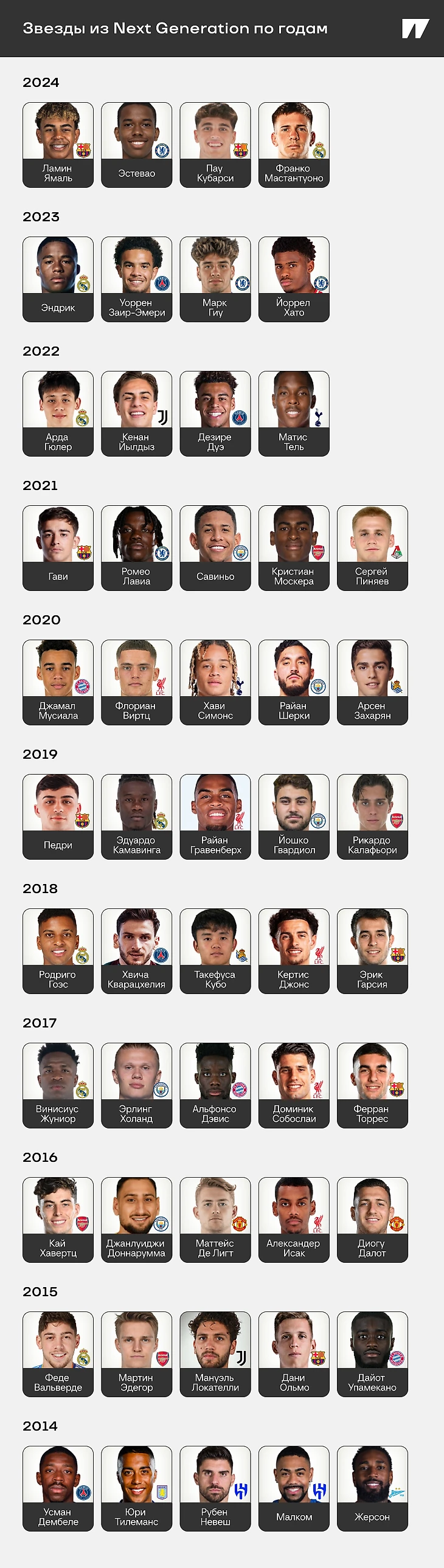 Самое любопытное, что все списки Next Generation хранятся на сайте The Guardian и обновляются каждый год: рассказывают про прогресс футболиста и отмечают, кто где играет.