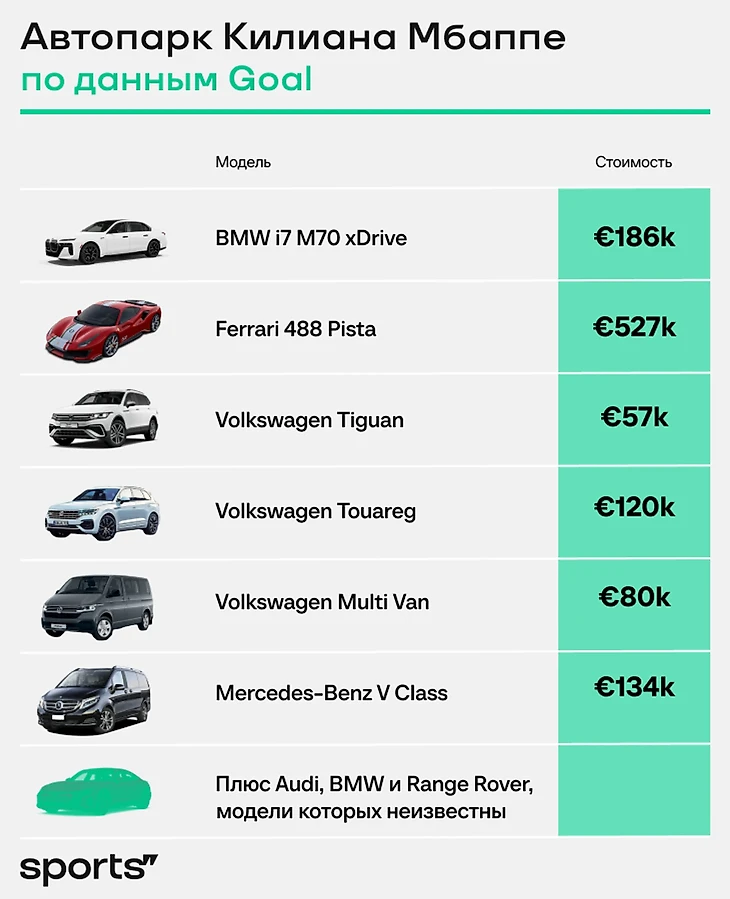При этом автопарк Мбаппе впечатляет. Клуб предоставляет Килиану водителей, а сам он просто наслаждается поездкой.