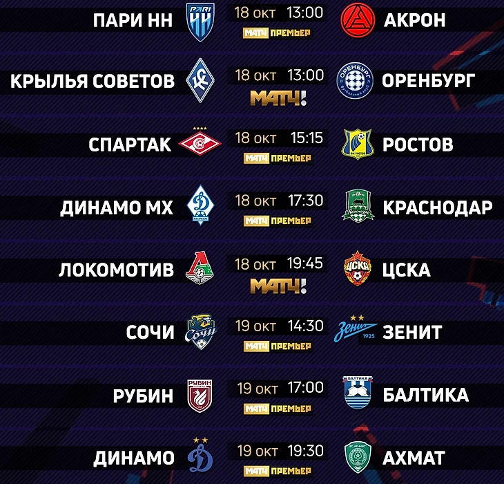 Расписание матчей 12-го тура РПЛ