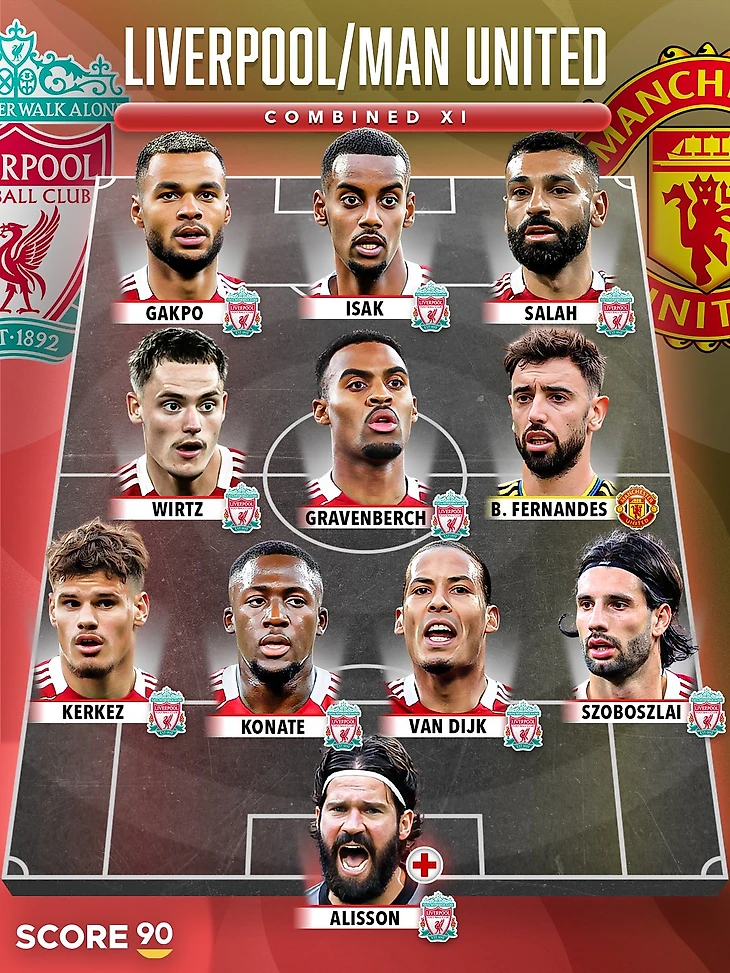 В преддверии новой встречи команд Score90 составил комбинированный состав из нынешних футболистов «Ливерпуля» и «Манчестер Юнайтед», портал жестоко обошелся с подопечными Рубена Аморима.
