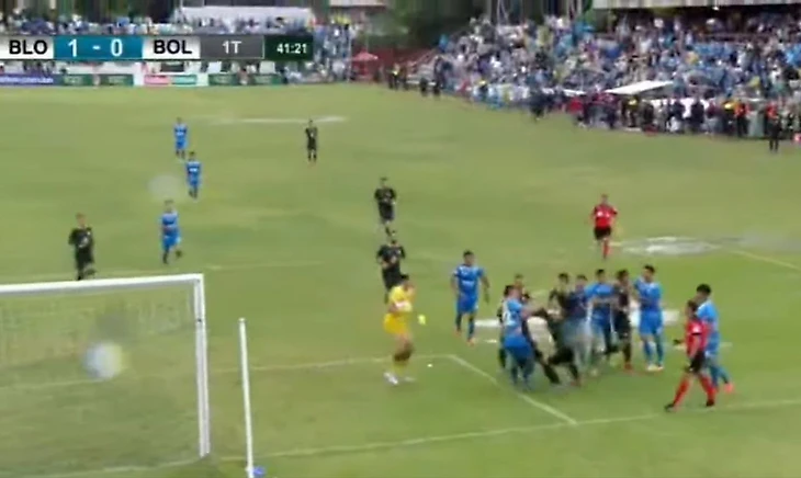 Баталлини обступили игроки «Блуминга», ему на помощь прибежал одноклубник Даниэль Катаньо и начал драку. Арбитр по итогам эпизода показал аж пять красных – три «Боливару» и две «Блумингу», удалил в том числе зачинщика Катаньо и упавшего Баталлини.