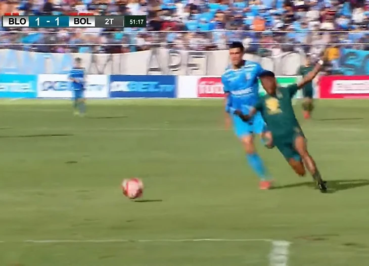 «Боливар» остался в меньшинстве, но не расклеился. На 52-й Патрисио Родригес сравнял счет. Через минуту другой форвард «Боливара» Дорни Ромеро побежал забивать второй, но игрок «Блуминга» Этчебарне уронил его на землю, потянув за футболку. Арбитр, конечно, удалил защитника.