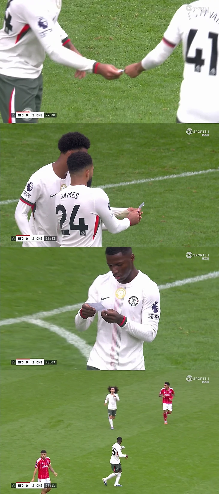 Выскочивший на замену Эстевао держал в руках записку от тренерского штаба «Челси». Бразилец передал листочек Рису Джеймсу. Тот показал написанное партнеру по защите Джошу Ачимпонгу и подключил Мойсеса Кайседо. Опорник «Челси» ознакомился с текстом и, судя по всему, попросил Марка Кукурелью чаще заходить в центр.