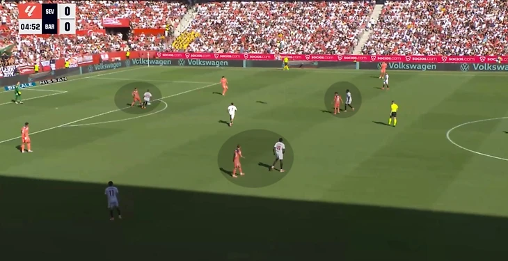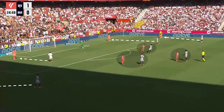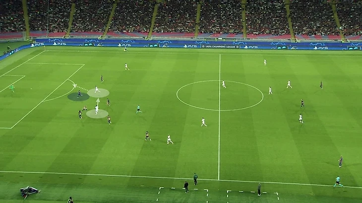 Однако этого было недостаточно — у Муньоса оказалось достаточно времени и пространства, чтобы принять мяч, подработать его и отдать на Андерра Барренечеа. Кунде упустил Барренечеа, что запустило цепную реакцию.
