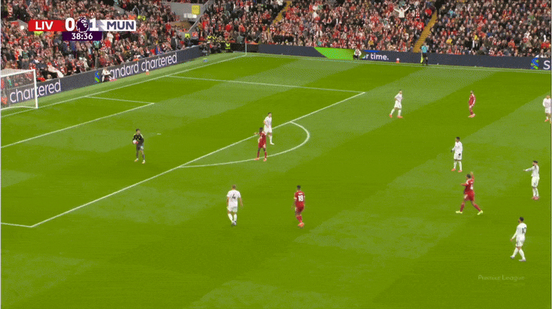 В этом эпизоде верховая борьба Мбемо с Ван Дейком вынуждает Керкеза отдалиться от Амада, чтобы прикрыть пространство, в то время как Кунья располагается в центральном круге, помогая «Юнайтед» выиграть второй мяч.