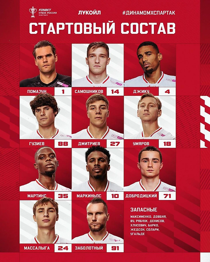 В рамках заключительного тура группового этапа Кубка России Спартак играл в гостях против махачкалинского Динамо. Обе команды уже обеспечили себе выход в Кубке в Пути РПЛ, но чтобы занять первое место в группе красно-белым нужна была победа в основное время.