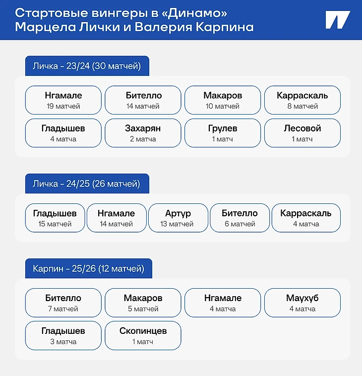 В итоге список доступных игроков на фланги атаки у Карпина заметно короче, чем у Лички.