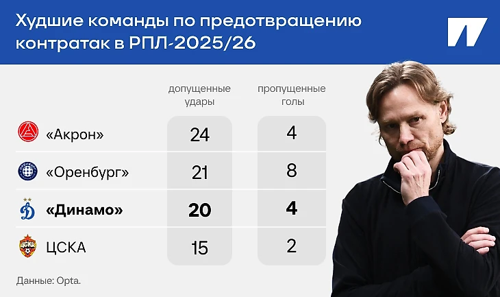 В итоге «Динамо» – одна из худших команд лиги по предотвращению контратак.