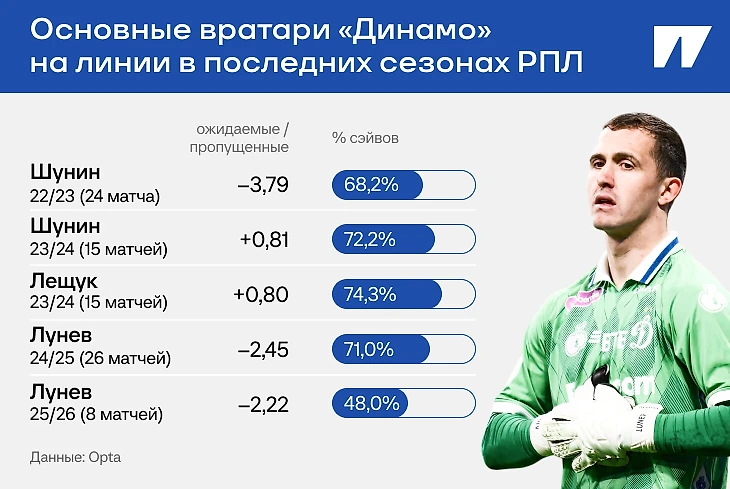 Например, уже нескольких сезонов «Динамо» не решает вратарскую проблему.