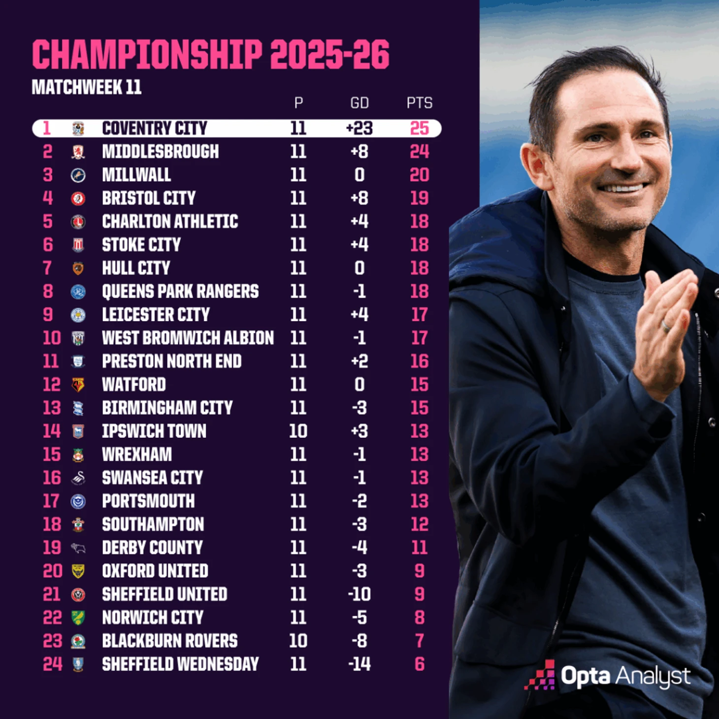 Как говорил Лэмпард, в этом дивизионе нельзя ничего принимать как данность. «Ковентри» знает, как всё может измениться: в прошлом сезоне после 11 туров клуб был в зоне вылета, но финишировал пятым.