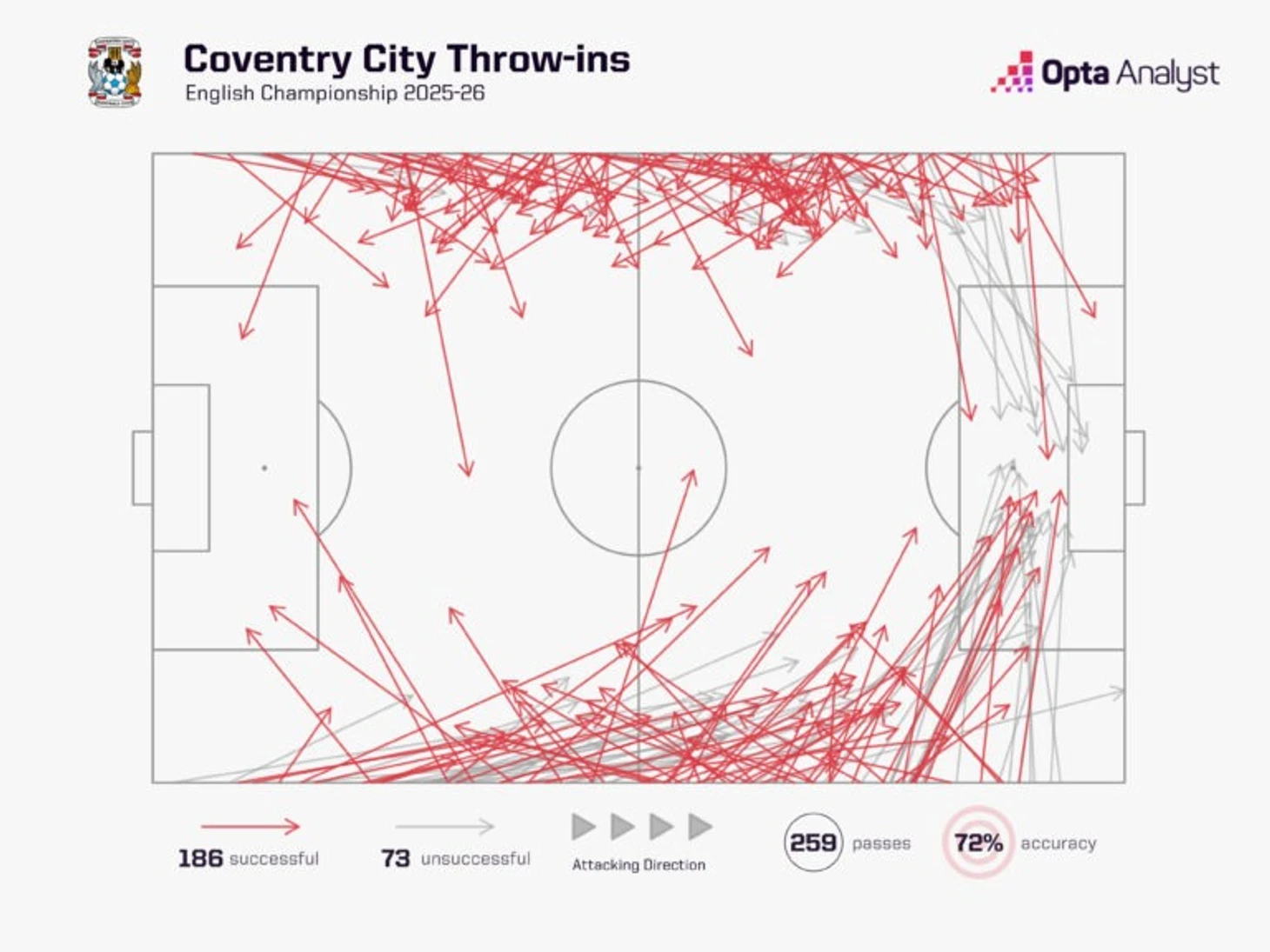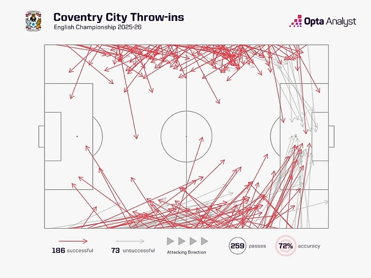 В футболе Лэмпарда чувствуется прагматизм, что закономерно отразилось на его подходе к стандартным положениям. Только «Оксфорд Юнайтед» (47) выполнил больше длинных вбрасываний в чужую штрафную, чем «Ковентри» (42), при этом команда явно уделила серьезное внимание и схеме розыгрыша угловых.