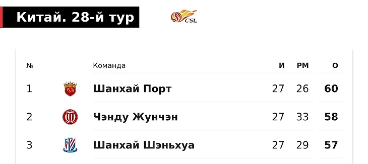 ● «Чэнду», наоборот, в последнее время забуксовал: всего одна победа в трех турах, хотя еще недавно лидировали. 21 сентября могли пропустить вперед «Шанхай» Слуцкого, но спаслись на 90+9 – вырвали выездную ничью, сохранившую преимущество в одно очко.