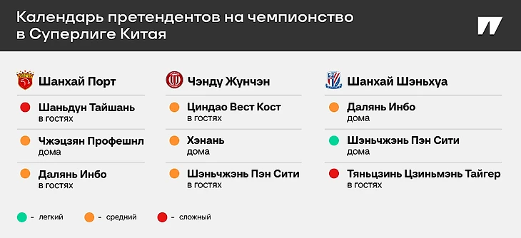 Вот общий календарь: остается по три тура. До предыдущего шансы были и у «Бэйцзин Гоаня» Кике Сетьена, но пекинцев приговорило поражение от «Шэньчжэня».