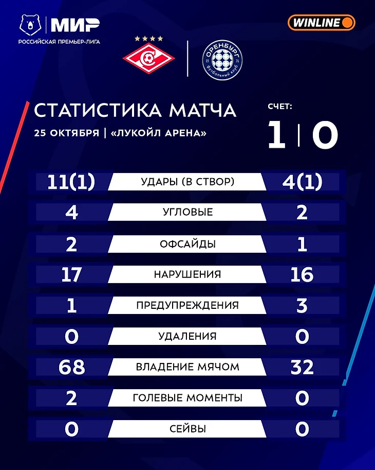 «Спартак» при ужасной игре набрал 22 очка и приблизился к «Балтике». «Оренбург» остался 14-м. А после этого тура команда может скатиться ещё ниже.
