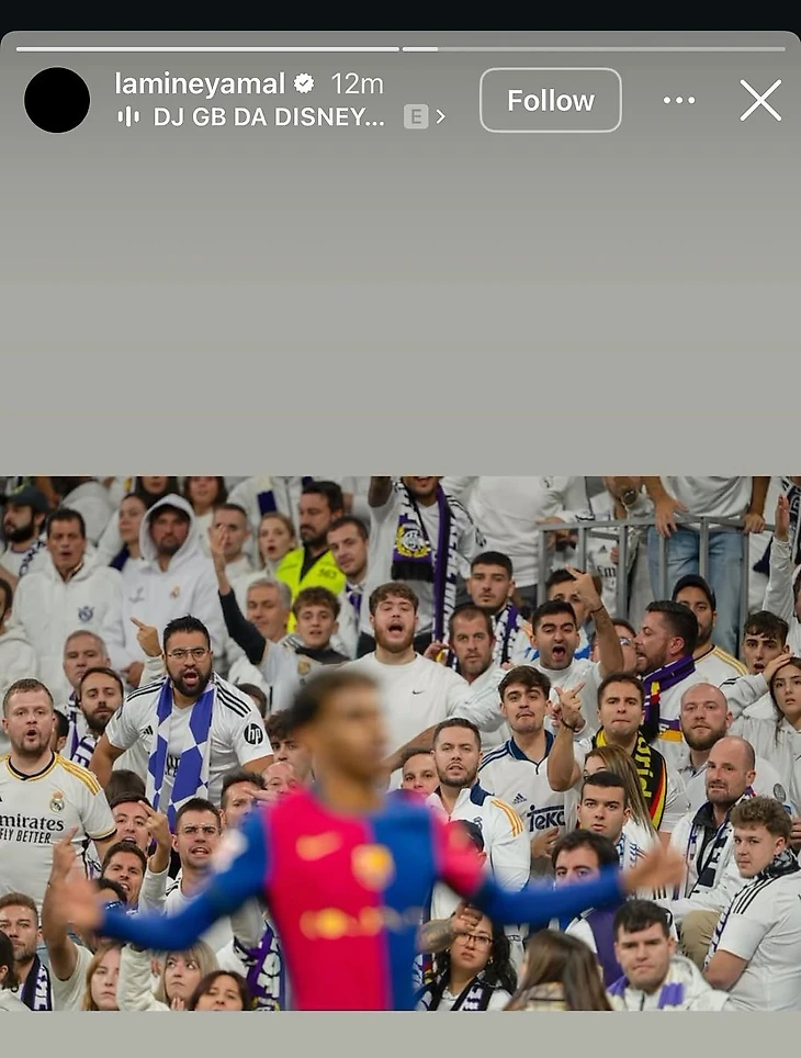 Теперь Ямаль выложил новое фото — на заднем плане видно недовольных фанатов «Реала». Прямо перед класико.