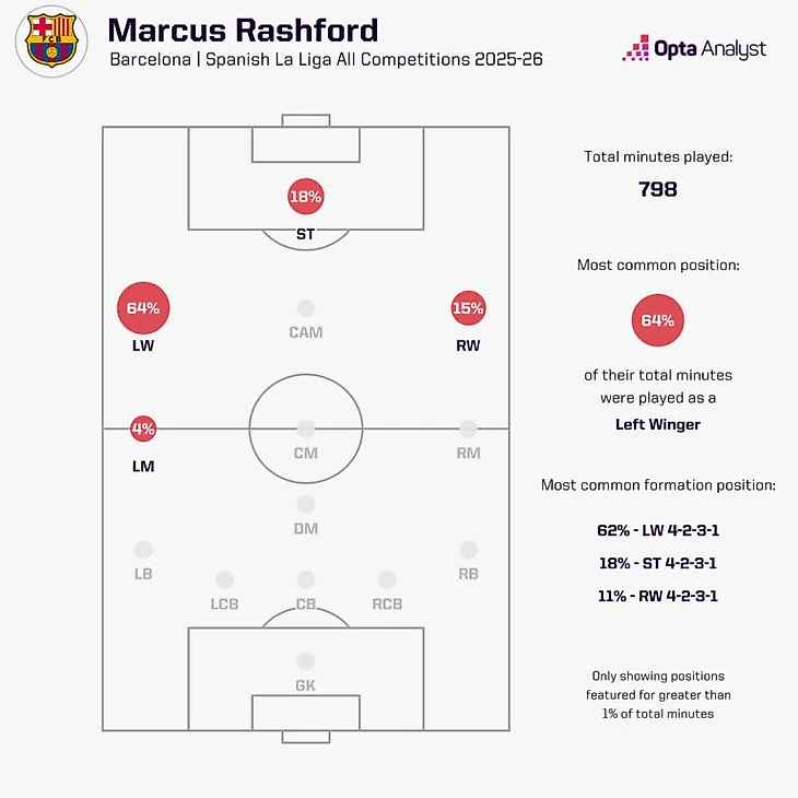 Это, конечно, указывает на то, что его приобрели не на конкретную позицию, а в качестве универсального запасного варианта на все случаи жизни в линии атаки — и в этом сезоне он уже отыграл 798 минут на различных ролях. Рэшфорд демонстрировал хорошие отрезки и даже показывал проблески своего класса, но его игра всё же не достигала космического уровня.