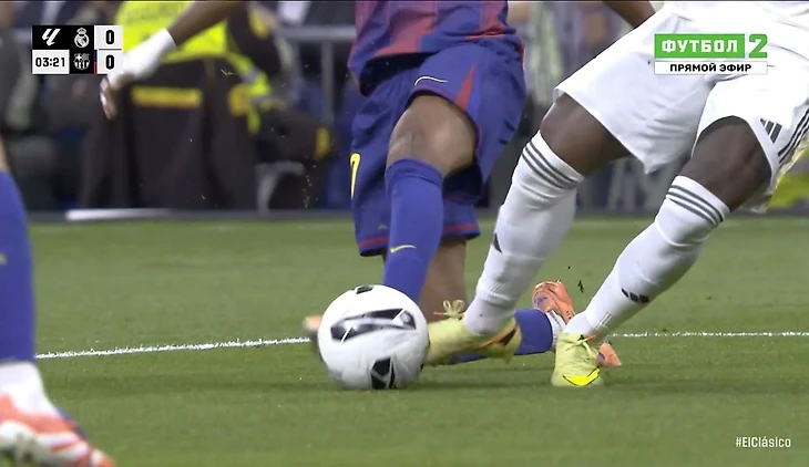 Объясняет экс-судья Эдуардо Иттауральде Гонсалес: «Пенальти не назначили из-за фола Винисиуса. Даже если Ламин Ямаль не полностью поставил ногу, именно Винисиус атаковал то место, куда ставил ногу Ламин... Так что это нарушение Винисиуса».