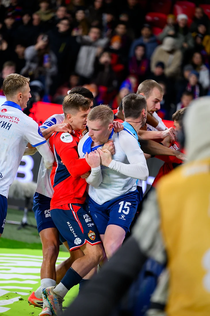 Во время матча Глебов запрыгнул на плечи Рассказову, после чего защитник «Крыльев» уложил футболиста армейцев на газон.