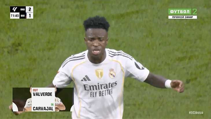 «Реал» выиграл класико на «Бернабеу», но самым недовольным на поле оказался не кто-нибудь из «Барселоны», а Винисиус.
