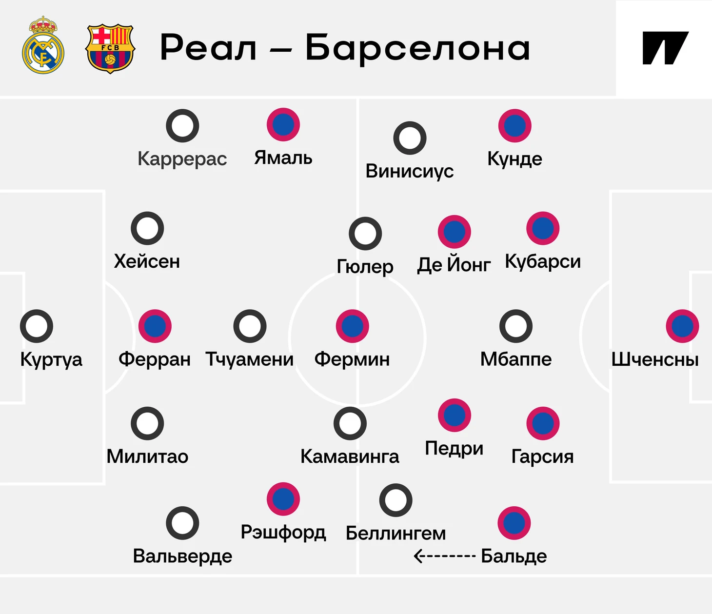 «Реал» умышленно оставлял Ламина в одиночестве: закрыл левый фланг, против самого опасного вингера соперника оставил одного Каррераса. В теории это максимально комфортные условия для звезды «Барсы». В реальности Ямалю отдавали мяч и почти не поддерживали: Жюль Кунде слишком опасался рывка Винисиуса. Ламину пытались помогать Фермин и Педри – их оперативно накрывали. Ямаль постоянно оставался один.