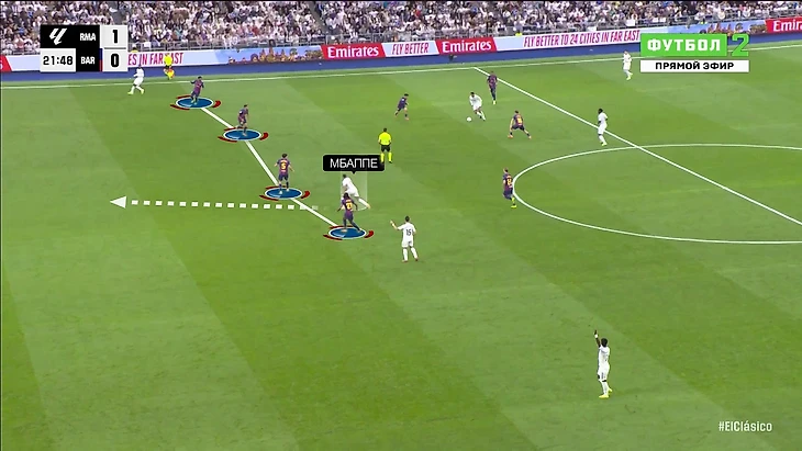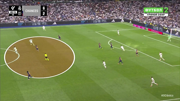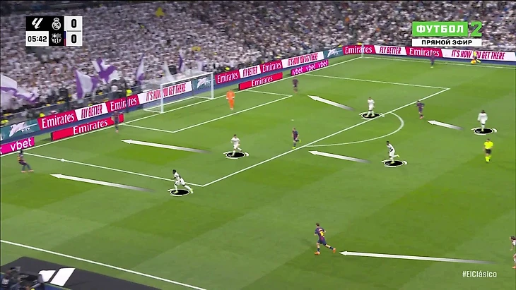 «Реал» отлично владеет этой формулой давления и использует ее почти в каждом матче. Она дала отличный результат на фоне кризисной «Барселоны». Приносила не только дискомфорт «Барсе» в первой стадии, но и прямую угрозу после высоких отборов: по умению трансформировать их в моменты и голы «Мадрид» лучше всех в Ла Лиге.