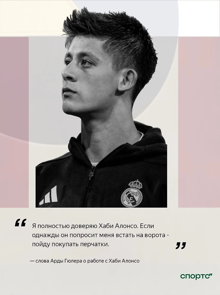 Главный тренер «Реала» испанец Хаби Алонсо, местный Сперанский, также разглядел в турецком футболисте большого игрока, способного выдержать давление, остаться ментально и физически на поле, вести за собой команду и самостоятельно оградить себя от наговоров - «лучший в мире», «молодой капитан», «новое поколение». В одном из крайних интервью Гюлер отметил, что если Алонсо поручит ему задачу - встать на позицию вратаря, он поедет за перчатками.