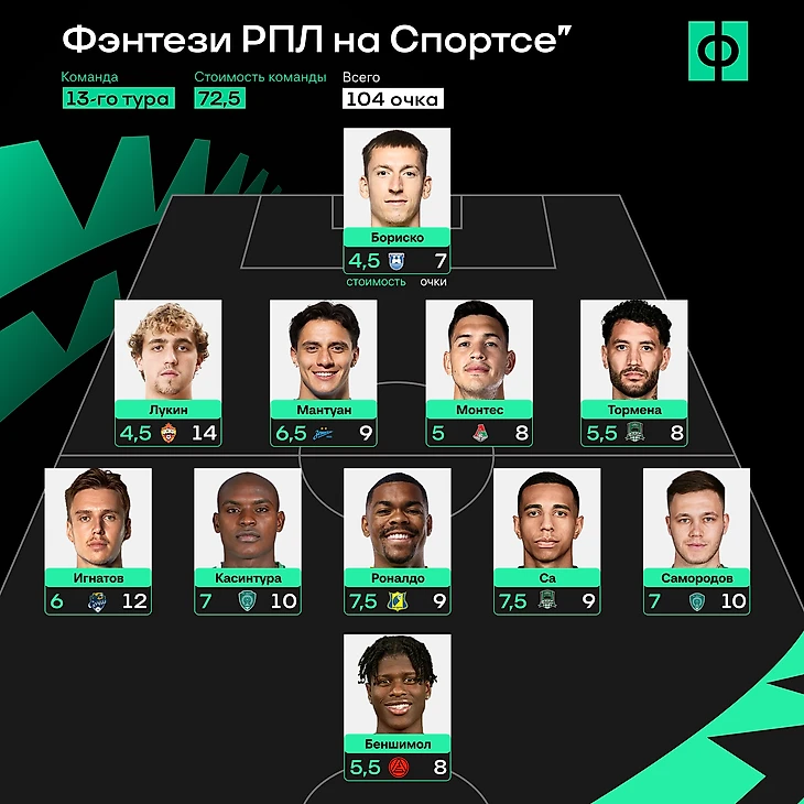 Это сборная 13-го тура фэнтези-турнира РПЛ: