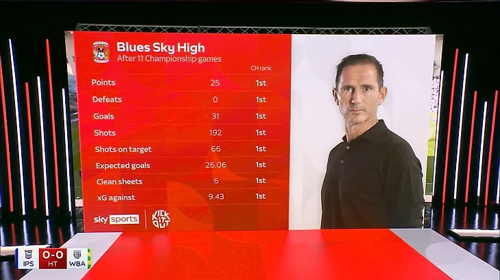 Во время обзора очередного тура на Sky Sports показали инфографику, подтверждающую феноменальную работу Лэмпарда.