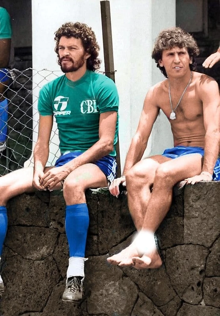 1986г. Палящее Солнце Мексики... ЗИКО и СОКРАТЕС (слева) - Главные Символы той Эпической Бразильской Команды, 1982-1986гг. В глазах, кажется, можно прочесть...Предвкушение беды или неудачи...