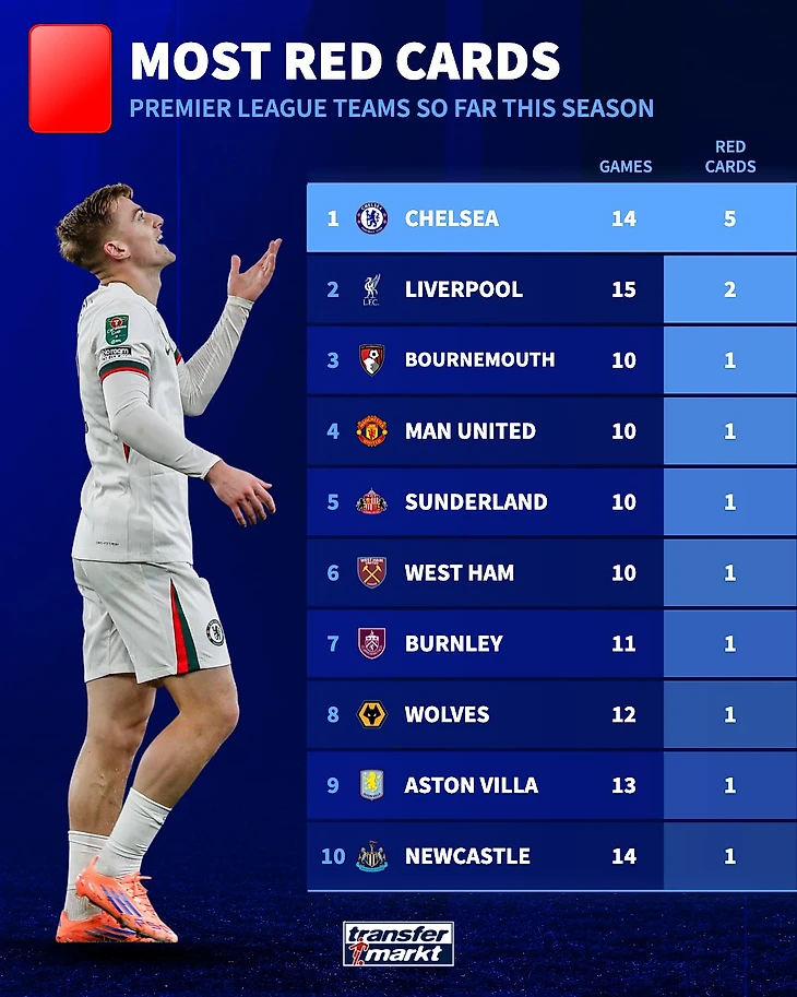 Кто-то проклял «Челси». Подопечные Энцо Марески получили красную карточку в шести из девяти последних матчей, в концовке игры седьмого тура АПЛ с «Ливерпулем» удалился даже главный тренер.