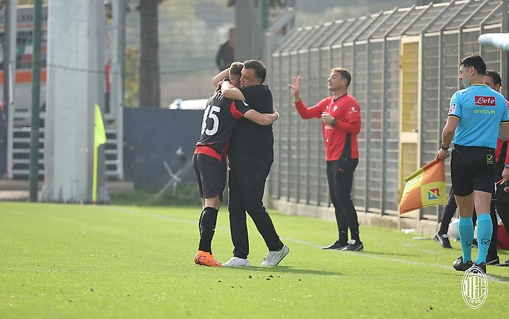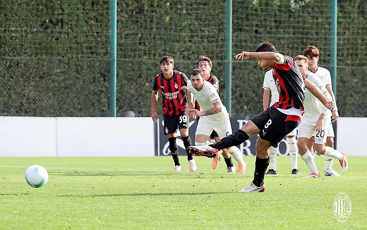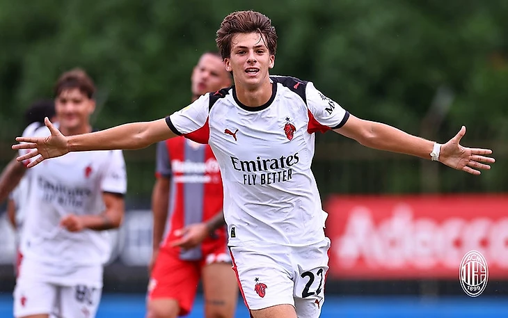 В октябре миланисты снова провели три встречи. Если с «Монцей» и «Аталантой» победить не удалось, то в домашней игре против, находящейся выше в табеле, «Чезены» парни выдали пока самый результативный матч текущего сезона во всей лиге – разгром противника. Удивительно, но молодые футболисты из Чезены самые результативные в атаке среди всех участников чемпионата, перед встречей с «Миланом» они забили 20 голов за 8 игр. Парни 46-летнего рулевого Николы Кампеделли, воспитанника и экс-футболиста «Чезены», и хозяевам забили дважды, но... пропустили семь раз. У «пострадавших» результативный дубль сотворил их лучший форвард Филиппо Гальваньо, теперь на его счету значится пять взятий ворот в турнире [ прим. – шесть игроков забили по 5 мячей, Симоне Лонтани, Николас Бальо из Бергамо и албанец Тоску из «Чезены» по 6 голов, а первое место в списке бомбардиров лиги занимает поляк Даниэль Миколаевски из «Пармы» с семью результативными ударами ]. В разгроме «Чезены» непосредственное участие принял нападающий Симоне Лонтани – команде из родного города миланист презентовал хет-трик. Симоне, родившийся в 2008 году, привлекался бывшим мистером к играм «Примаверы» в турнире 2024/25, теперь же после ухода Феде Гуиди старый знакомый по составу U-17, Джованни Ренна, сделал юного бомбера основным в линии атаки.